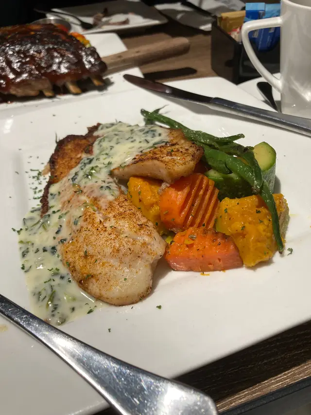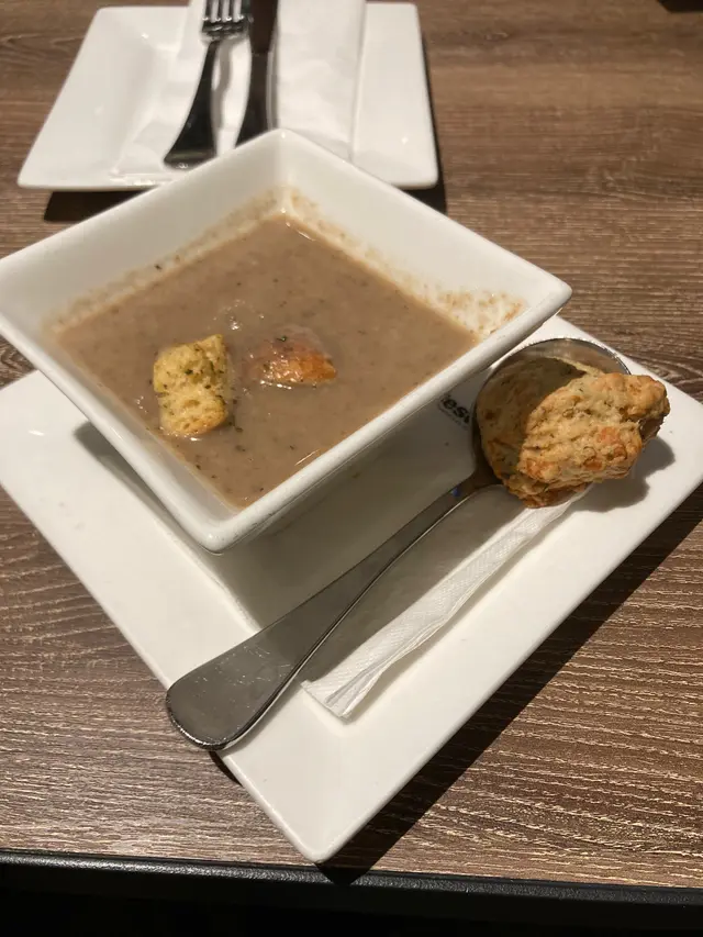 Ruby今日係九龍灣Ikea附近工作,一行六個人要Lunch搵到地方食嘢確實有難度,經過Ruby Tuesday見到有set lunch,價錢都OK丫,加上實在太耐無食過依間,就入去試下。叫咗兩個午餐,一人一個餐仲可以叫啲小食share,非常好。我淨係講自己個份啦,首先有個蘑菇湯配一塊鬆餅,真心幾好食,但依款係美式鬆餅,唔似平時食開嘅英式鬆餅,咸咸地配湯幾襯。然後主菜來了,香煎鯛魚配忌廉菠菜汁,分量略為細咗少少,條魚還好一般般,都收貨既,個汁我覺得幾好,唔會有陣生粉味,口感亦唔會太水又唔會令你食唔到魚味。不過淨係依份鯛魚男士真心唔夠食,還好仲有叫咗啲薯條雞翼小食,飲埋杯熱啡,剛剛好夠飽了。整體環境都叫坐得舒舒服服,我哋六個人坐大卡位傾計都幾舒服,食物質素都對得住個價錢,整體OK…Read More