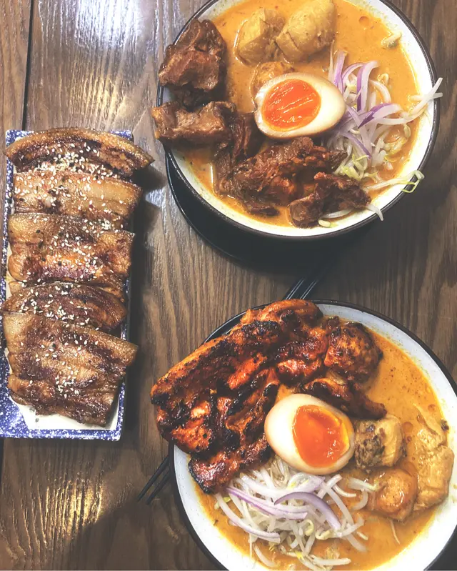 馬騮太太🐒一直都想試嘅食店之一全因傳聞其灸燒五花腩肉非常出色而且五花腩係馬騮太太嘅愛好💗即使怕肥如小弟都要頂硬上😅不過依間小店都唔係話想食就食到要講緣份🙏🏼佢哋會每日公報當晚營業時間而且要有心理準備去到仲要排長龍🫣當然努力係有回報㗎🥹終於試到傳聞中嘅特濃喇沙同埋招牌灸燒五花腩😋認真!本豬認為真係值得去努力一次嘅!就算本豬唔食肥肉嘅都啪咗半碟五花腩🤤因為五花腩本身個脂肪燒得少許脆口,口感大增👍🏽如果有同我一樣,本身唔食肥肉,叉燒都要走膏嘅人就真係要俾次機會佢哋。另外個特濃喇沙亦非流料,非常香濃嘅沙爹、花生同鮮味,我同馬騮太太係冒死飲埋碗湯,點解係冒死?因為個濃郁湯底係用蝦殻淆出鮮味,而其實…我哋係對蝦蟹敏感😂…Read More