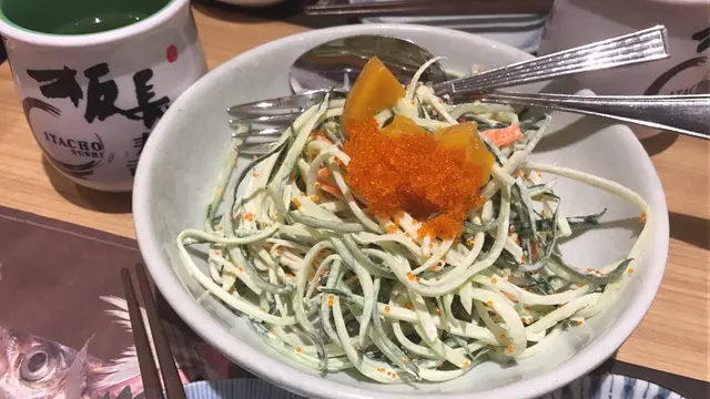 忘了名字,類似番薯芋頭的炸物。帶子三文魚子牛油果沙律