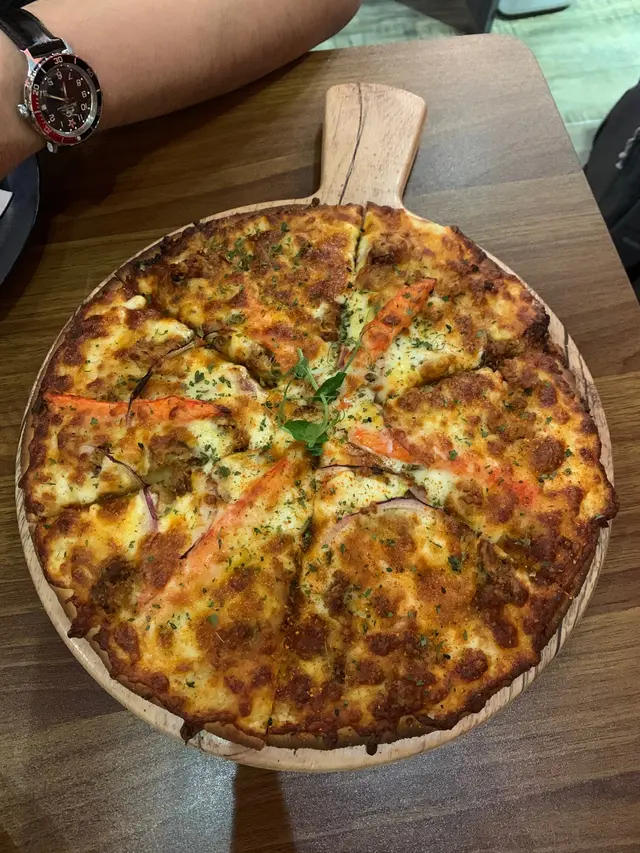 去到大圍幾間想食既餐廳都full左,見呢間評價好似幾好就去試下。位置係有啲偏僻,由mtr開始行約大約7-8分鐘。一入到去個感覺麻麻地,燈光同枱櫈既配撘一般。今次我地被安排坐梳化位,最大既問題係啲梳化開始殘落,已經被坐到凹曬,唔好坐。好講返食物。隻豬手係幾好食既,個皮好酥脆,肉質都嫩滑,食多幾舊其實會覺得幾咸下。係一個好適送酒既菜式,可惜呢度無得嗌酒。絕不推薦金沙軟殻蟹pizza。好既就係佢落芝士落得好重本。唔好既就係: 第一,軟殻蟹太細粒,實質食唔到咩軟殻蟹,要好仔細食先食到dd蟹皮,就咁大啖咬就好似食到舊炸粉咁大把,仲有幾條蟹柳,不過作用不大。第二,佢既餅底好粉同好油,其實呢個脆餅底應該係先焗好個底再放面料再焗,但佢個餅底食落好粉,好似生生地咁,然後又吸曬面料既油,好嘔心。食完呢個已經有啲反胃,dum曬啲底。今次既經驗唔太好,環境麻麻,食物等左接近35分鐘先有個pizza,豬手就接近45分鐘,等到人都就訓著,無下次。…查看更多