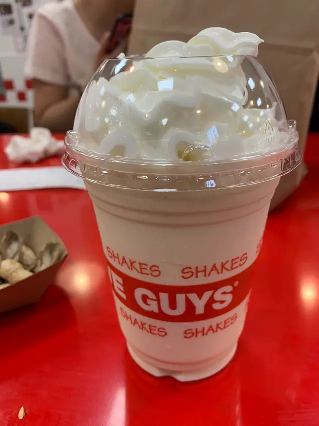 得奶昔好飲。呢間five guys都聽左好耐,行過無乜人就入去試下啦,叫左個burger,一個薯條(辣既),同埋一杯peanut butter milshake。個包黎到好熱但係系個錫紙既包裝搞到隻手好油,食到有的le hea,個包無咩牛味,以呢個價而言,無特別,唔值。另外,聽講呢度既薯條係新鮮薯條,但唔知係咪新鮮既關係,啲薯條好軟身,完全唔脆,衰啲講m記的薯條都好食啲,另外叫左辣既關係,佢會加啲Cajun粉,但太多啦,好咸。最值得講係杯奶昔,好濃既花生醬味,好滑好好飲,雖然上面啲cream無セ奶味,但都值得飲下。SHAKES SHAKES GUYS HAK…查看更多