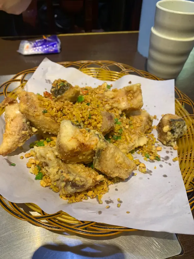 之前食過藍田個間小明珠,唔知係口味問題定點,覺得食落好酸,同埋佢地用粗個隻紅薯粉,食到好攰,炸豬扒都唔特別,個炸粉有啲硬,同埋同塊肉係分開既。咁今次食宵夜,去到觀塘個間試下啦。叫左個口水雞,戈酥,炸銀絲卷同椒鹽鯇魚骨腩。個口水雞係好冰凍個隻,再加一大pat辣醬係面。仲有啲花生粒係面。啲花生好脆口,幾好。但係個辣汁好辣。加上啲雞冰到一個點,簡直係傷害緊啲牙齒。好食既有戈酥同埋個銀絲卷。個卷外脆內熱辣辣,加埋啲煉奶好好食。個戈酥大大粒,個粉調教得幾好,夠脆但又唔會太厚粉。但係個魚就有啲腥,唔加啲炸蒜基本上係無味…查看更多