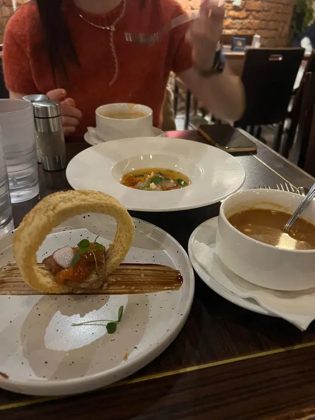 平安夜去食Xmas 4道菜menu,頭盤都精緻有擺盤,舊包好脆好新鮮,夾個一口鵝肝仔再香口;主菜太太揀左三重牛,一件牛餃子,比較普通,另外兩款烤牛一款肉味一款有肥有汁,都合格有餘,講真大時大節呢個地段環境,有心機、無西面、合理節日價錢,都算係咁。…Read More