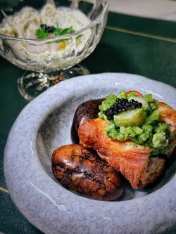 Smoked Steak Tartare on Buttered Brioche牛肉細膩柔嫩,煙燻香氣恰到好處,搭配酥軟的奶油麵包,口感層次豐富。Southern Seas - Scallop Ceviche扇貝入口即化,酸橘汁的微酸完美平衡扇貝的鮮甜。Spanish Red Prawn “Ajillo” served with Toasted Brioche 西班牙紅蝦,蝦肉彈牙,蒜香與橄欖油的融合令人垂涎。麵包外脆內軟,完美吸附了蝦汁的精華。QM Signature Suckling Pig這道招牌菜無疑是全場焦點。乳豬皮脆肉嫩,油脂香氣四溢,搭配香煎鵝肝的濃郁滑順,口感與風味達到完美平衡。Signature Seafood Paella Barcelona每次吃西班牙菜必叫,米粒吸飽了海鮮高湯的精華,帶有微微的焦香。Basque Burnt Cheesecake口感輕盈卻不失層次,甜而不膩。Churros西班牙油條,外皮酥脆,內裡鬆軟,撒上細緻的糖粉,搭配濃郁的巧克力,完美的收尾。…ดูเพิ่มเติม