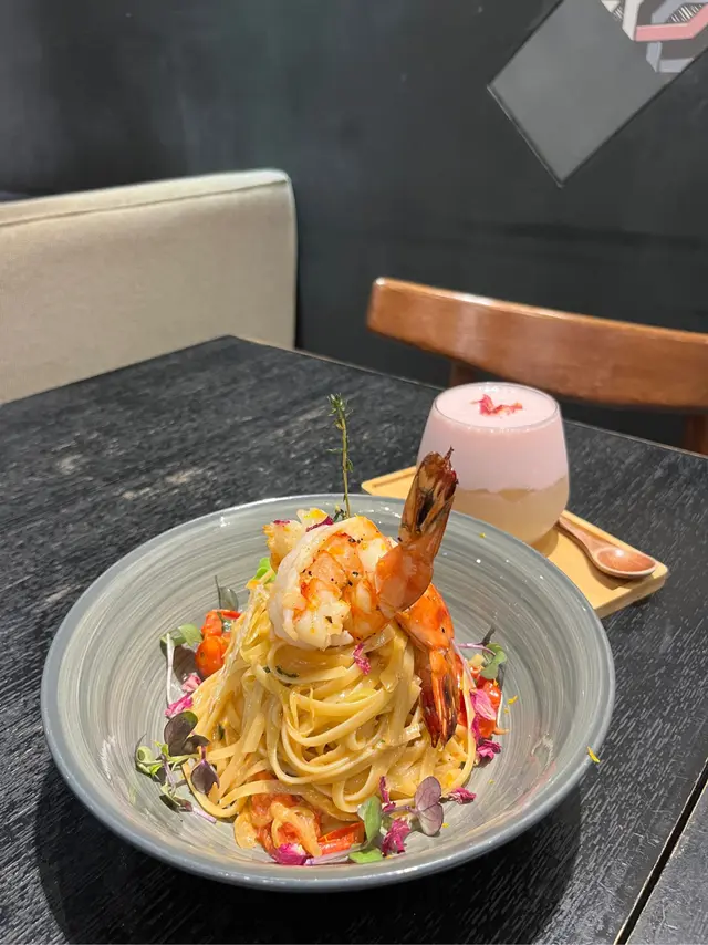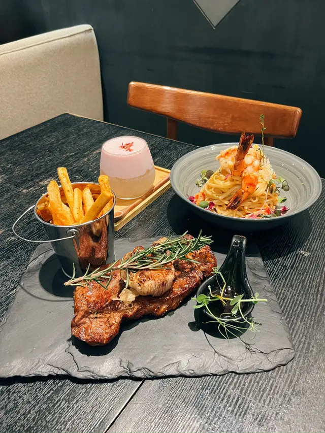 一入到cafe就見到好高嘅樓底 空間感好夠 感覺好舒適☺️ 食物嘅擺盤都好有心思 用黎打卡一流📷今次叫左兩個主菜同甜品🍮龍蝦汁意粉,上枱就聞到好香濃嘅蝦味🦐 意粉好掛汁🤤 大蝦好新鮮食落彈牙👍🏻 五成熟嘅安格斯西冷,肉汁多唔會韌,加埋大蒜一齊食係另一番風味🤭 如果鐘意濃味啲可以點埋汁🥩 薯條有調味,食落有微微嘅辣 都幾惹味🌶️ 大推呢度嘅Tiramisu 賣相好靚😍 微微嘅酒味 ,食落甜而不膩,仲可以試下配埋香橙果乾食 口感更豐富😋 而杯飲品就好refreshing ,有椰子水做base加上桃味,好特別嘅配搭👍🏻🔸Prawn Linguine 🔸Angus Sirloin 🔸Hunt Signature Tiramisu 🔸Coco Sparkling with Peach…Read More