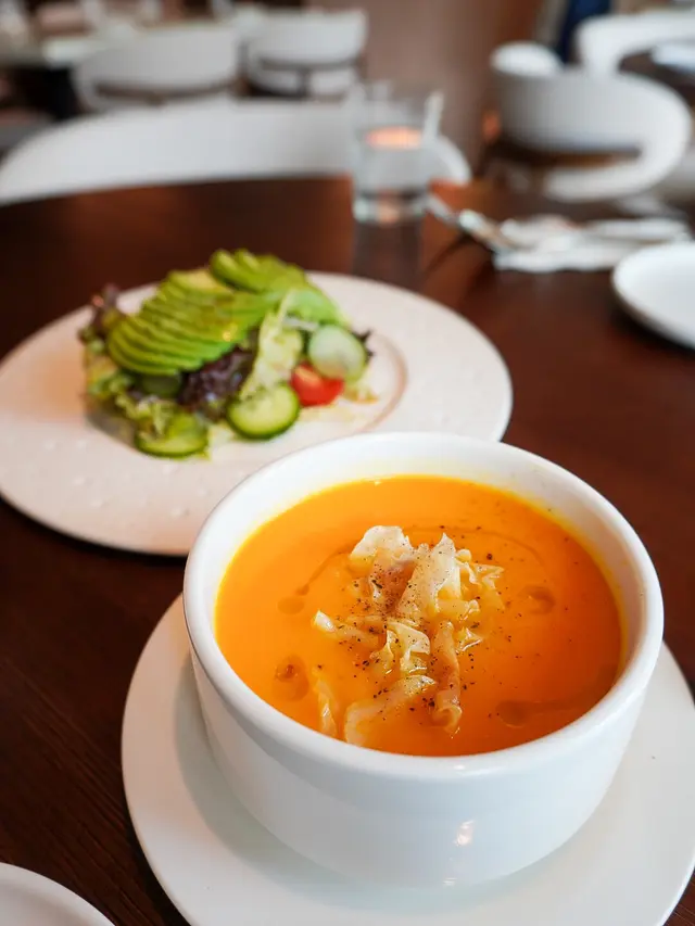 𝐉𝐮𝐧𝐨位置超方便,裝修以金色綠色為主,整體感覺好舒服好有feel!!☺️第一次嚟到梗係要試吓佢嘅Tasting Menu啦‼️性價比好!高!$490有齊多款前菜、主菜、甜品🍧ALL STARTERS TO SHARE🔸Iberico Ham 48 Months🔸Whipped Feta Feta🔸Caviar d’Aubergine🔸Codfish Fritters “Beignet de morue”🔸Padron Peppers前菜都有五款款,每一款都好有驚喜😍 自家製麵包香草味啱啱好,口感好鬆軟再配埋火腿嘅鹹香味,正😙有一款係素食🍆,既保留茄子嘅口感,又加入咗唔同嘅香草同蜂蜜,好fresh🤣西餐必備嘅芝士,配搭番石榴籽同蜂蜜,完全唔會膩✌️MAIN🔸Juno Truffle Tagliolini🔸Lobster Acquerello Risotto主菜方面揀咗兩款,第一款麵條比較幼,一上菜已經俾滿滿嘅黑松露吸引住😍 黑松露味好濃郁,仲有淡淡嘅橄欖油香,配搭得好好!第二款係龍蝦燴飯,燴飯嘅醬汁非常濃郁,勁香龍蝦味🦞DESSERT🔸Tiramisu🔸Tarte Tatin最後嘅兩個甜品橫上完美嘅句號🤣 Tiramisu 啲cream好滑,層次好豐富💕另一款甜品上面係滿滿嘅蘋果蓉,下面嗰層酥皮好香口,仲有雪糕,勁滿足🔥😍😍Tasting MenuHK$490 PER PERSON…Read More