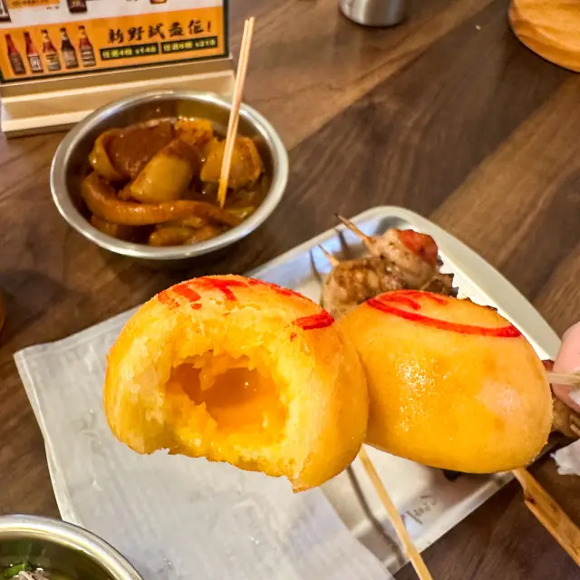好耐冇去過長洲啦,都bookmark咗唔少小店要去試,其中長洲鐵漢嘅脆脆平安包就最吸引我😂長洲鐵漢主打港式串燒,可以試吓啲特別款式嘅串燒🍢🍡小店嘅佈置都有落過心機,主角鐵漢行漫畫風,都幾打卡able 📸首先必點嘅一定係脆脆平安包,有流沙奶黃或者係芝麻餡💛🖤將普通嘅平安包炸過,有少少似食炸饅頭,一咬開中間嘅奶黃唔算好澎湃,但係個味道好好!第二款必試係蜜燒鹹蛋黃臘腸餅,都係第一次見,與其話係臘腸餅,我覺得更加似豬肉乾嘅味道,甜甜地好有口感😋串燒方面要咗鐵漢少女心👧🏻即係豚肉包住士多啤梨🍓又幾得意,鹹鹹甜甜咁。另一款黎姿,即係荔枝豚肉🐷咬開好Juicy,荔枝嘅甜味平衡咗豚肉嘅油膩感,好好食😚特色小食要咗白酒煮海蜆,味道調校得好好,重牛油蒜蓉味🧄🧈亦都有少少辣椒🌶️所以整體好惹味,如果啲蜆大隻啲就更好啦🤪最後要咗個冰鎮黃金咖喱魷魚,魷魚爽口,帶點微辣,都唔錯🦑飲品方面有好多本地出嘅啤酒,就算冇酒精嘅選擇都有幾款,試咗山楂蜂蜜梳打,飲落清爽酸甜,好有特色,好推薦💯🔸黎姿🔸冰鎮黃金咖哩魷魚🔸蜜燒鹹蛋黃臘腸餅🔸鐵漢少女心🔸脆脆平安包(流沙奶黃)🔸山楂蜂蜜梳打📍#長洲鐵漢 (#長洲美食)長洲新興街65號地舖…Read More