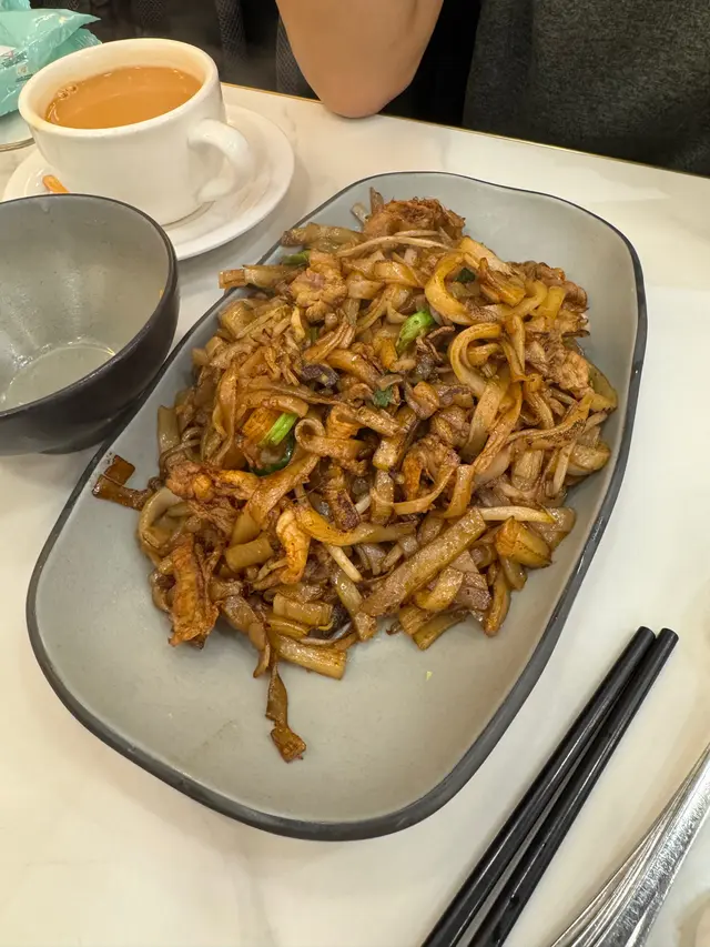 和小朋友上完興趣班在附近吃晚餐。 看到此茶餐廳有幾個人等位,餐牌也正正常常, 就進去試一下。點了乾炒牛河和焗肉醬意粉。被乾炒牛河的賣相嚇一跳,河粉痴埋一齊,好似不夠油炒咁,明明吃下去都覺得很油膩,還能吃到炒焦的味道。牛肉質素差過佳寶買的肥牛。焗意粉的意粉很霖身,似是煮了很久擺了很久。味道平平無奇。送的例湯算是成餐飯最好味的。服務態度不算差。但餐廳衛生有待改進,座位下面有紙巾和食物,餐具有跡洗不乾淨。總結:一定不會再光顧此茶餐廳。