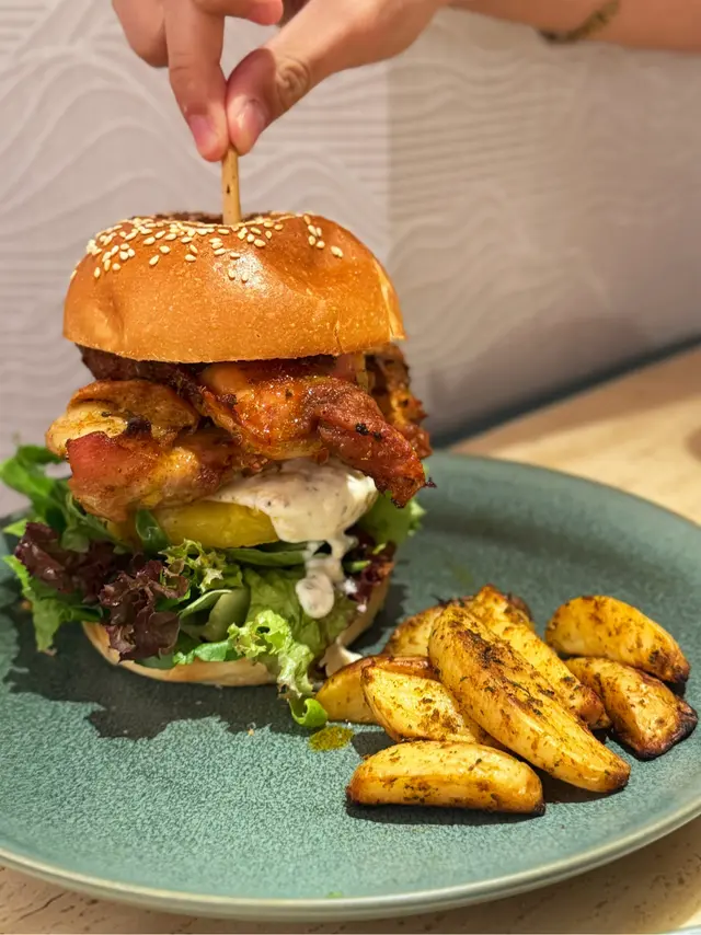美麗華新開Cafe,環境舒適,選擇又多😍✅烤雞菠蘿漢堡配檸檬乳酪醬及焗薯呢度個burger非常巨型🤣,烤雞扒超大件,見到個實物即刻覺得好抵🍔中間嘅菠蘿同醬汁好夾,推薦大家試呢款😌✅厚切意大利煙肉卡邦尼意粉用厚切煙肉口感更好,帶濃郁煙肉油香🥓卡邦尼意粉好掛汁,口感creamy卻不膩又有層次✅Latte &Earl Grey Chocolate伯爵茶同朱古力嘅配搭好好飲,比例啱啱好,朱古力味好濃郁✅藍莓核桃蛋糕自家製蛋糕🍰會切片上,口感非常鬆軟😍💛好味指數:4.7/5💜回頭指數:4.7/5📍 Espresso Alchemy (尖沙咀)尖沙咀彌敦道132號美麗華廣場1期1樓113B號舖…Read More