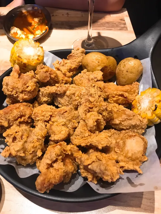 今日同男朋友紀念日知道我不嬲都中意食韓國野🇰🇷所以又帶我嚟多次呢一間餐廳!男朋友點左杯藍莓乳酪奶昔 酸甜交織 酸係嚟自藍莓 甜係嚟自乳酪 幾好飲 雖然對於平時唔太好太甜既我嚟講 一開頭飲唔係幾受到 但之後發現無佢唔得😂😂我點左提子碳酸水 幾解渴但對比起奶昔會無咁特出主菜叫左2款 呢個係泡菜豆腐牛肉鍋!睇下咁紅冰知有幾辣 然後就知杯野有咩用啦😂真係辣 但裏面有豆腐 粉絲 茹同牛肉 雖然辣但個人嚟講覺得味道係唔錯唔少得食原味無骨炸雞 超好食呀!!香脆不在話下 啖啖肉 啲醬汁都配搭得好…Read More
