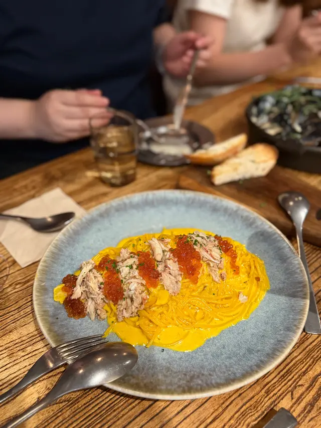 蟹肉三文魚籽藏紅花意粉