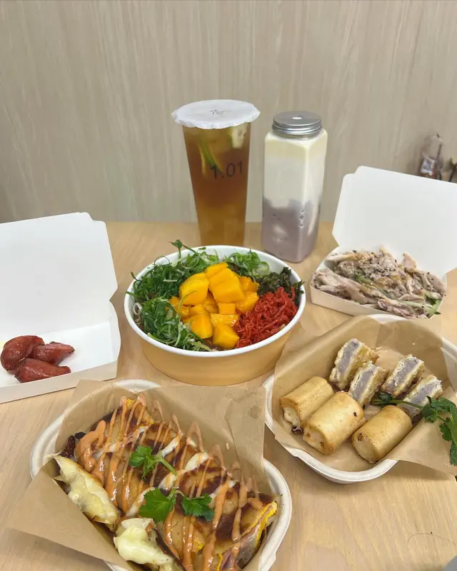 唔會heavy的台式美食( ̀⌄ ́)~~~比起一般台式食物少油少鹽(˶‾᷄ ⁻̫ ‾᷅˵)食物同飲品同樣少調味少糖( ̀⌄ ́)很喜歡🔸脆炸鮮奶卷•古早芋泥二文字 $48炸鮮奶超驚艷(´▽`)外脆內軟炸皮很薄很脆 一咬即碎裏面係滑嘟嘟鮮奶 半流心奶凍狀(´▽`)重奶香( ̀⌄ ́)好味芋泥餅好天然 無額外加糖的感覺一咬濃濃芋泥香( ̀⌄ ́)好適合芋泥控🔸壹.01芒果魯肉飯 $58份量十足 魯肉入味魯肉偏瘦 少肥膏( ̀⌄ ́)醬汁唔會過咸芒果全部好甜( ̀⌄ ́)配魯肉飯出奇地搭 減少油膩感🔸蘇子手撕雞 $25淡淡嘅調味 唔會過咸突出手撕雞本身香味 推介(´▽`)(溫馨提示 夜晚去經常賣晒的喔(´▽`))🔸拉絲芝士火腿蛋餅 $39咸香嘅火腿芝士配千島醬(˶‾᷄ ⁻̫ ‾᷅˵)絕配蛋餅足料 芝士可以拉絲喔🔸台北夜市小食拼盤 $36(台灣腸+花枝丸+鹽酥雞)炸物出色 脆而不油膩( ̀⌄ ́)鹽酥雞肉質嫩滑 炸皮脆但唔厚 必試炸花枝丸同樣彈牙juicy(˶‾᷄ ⁻̫ ‾᷅˵)🔸全手作芋頭鮮奶 $24 (加配價)必點 真材實料的芋泥鮮奶鮮奶無額外加糖 口感醇厚(不是稀稀的那種鮮奶喔( ̀⌄ ́))大量滑溜芋泥(⁎⁍̴̛ᴗ⁍̴̛⁎)配鮮奶超幸福好天然的味道(*¯︶¯*)滿足🔸黑糖鮮奶(大) $33飲品同樣係微糖 好合適 唔會過甜(⁎⁍̴̛ᴗ⁍̴̛⁎)牛奶醇厚 有全脂奶嘅奶香(´▽`)🔸 黑糖珍惜鮮奶+寒天(大) $40寒天口感較硬身 似實淨的啫喱口感一大塊好好咬 但用飲管有點難吸(´・_・`)炸物同芋泥高質(˶‾᷄ ⁻̫ ‾᷅˵)推介性價比高 下午茶同晚市仲有九折喔~…Read More