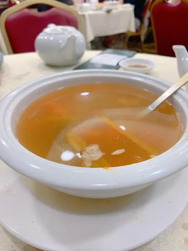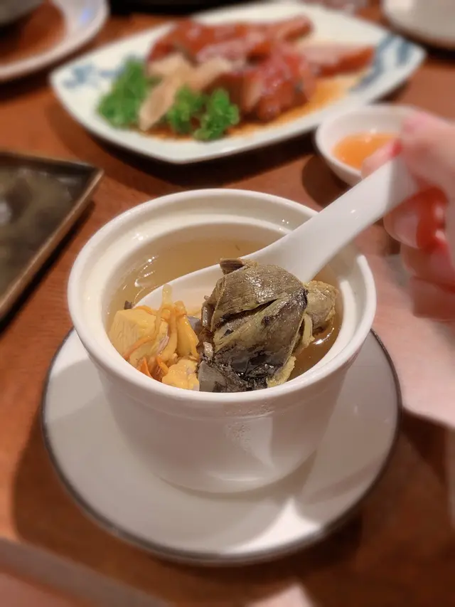 尖沙咀新地標內又一新餐廳🍴更有兩位資深總廚坐陣,第一時間試一下!但當天去金牌滷水鵝片已賣光!唯有下次再來潮聖一下吧!在街外吃飯也想喝口湯水,點了雪蓮子蟲草花燉竹絲雞,足料又清甜,女士必愛!燒味雙拼點了金牌燒鵝配招牌蜜汁叉燒,燒鵝表皮相當香口、肉質緊實,叉燒對比下比較遜色桂花脆生蠔令人驚喜,香濃的蠔味外皮微脆,配上微甜的桂花醬汁,每咬一口都是肉!但一定要來到熱騰騰時立上吃掉,冷卻後便失去香脆口感。松露野菌雞球煲仔飯一上桌便香氣撲鼻,陣陣的松露香在煲仔上久而不散,吃下去也充滿松露香!最欣賞的是雞球都去了骨,可以大啖大啖吃!必點的手工反沙芋,吃過回味無窮!熱騰騰的芋頭外佈滿幼細的砂糖,超級滿足的!話梅陳皮梳打也推薦!飲品款式還有保衞爾牛肉汁,感覺像淡味牛肉湯,相當有趣,好不好喝即見人見智了哈哈!…Read More