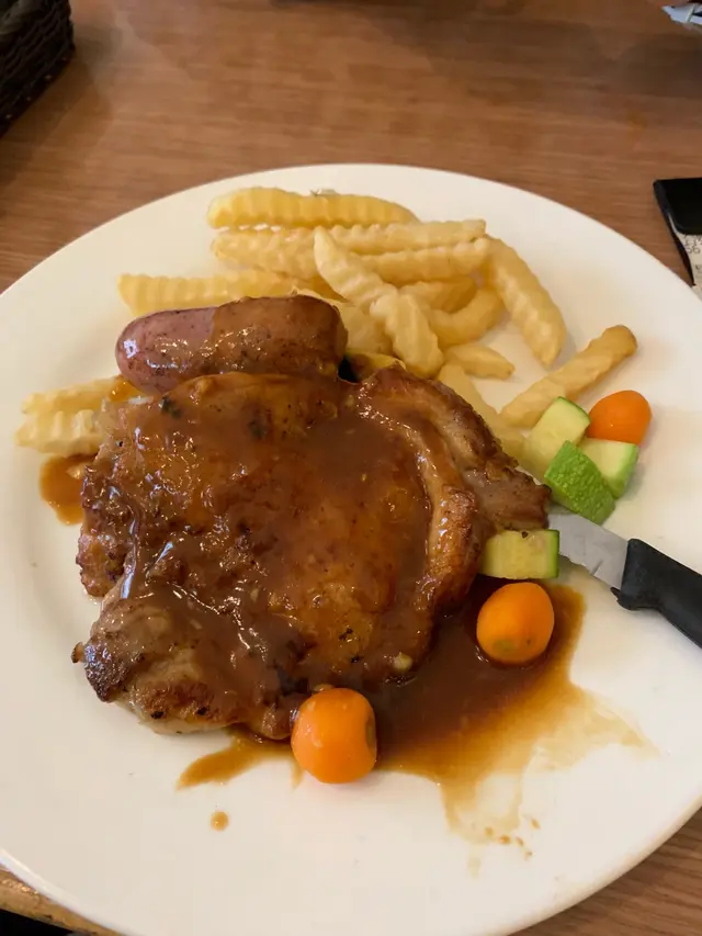 見到塊招牌果陣就諗做咩係新界會有間九龍既冰室架好奇咁入去食左個晚餐叫左個咖哩吉豬一來到就覺得超大份扒又係厚切仲比埋把扒刀你咖哩汁係我至愛既港式風味豬扒都幾脆下係汁唔太夠順帶一提 個熱奶茶都沖得幾好…Read More
