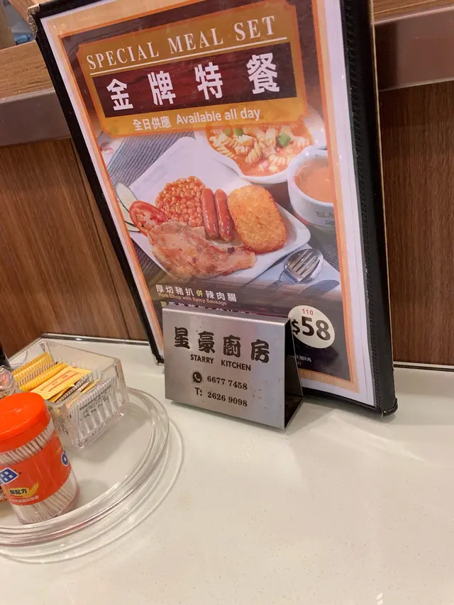 雖然旺角有各式既野食但久唔久都想食下港式茶記今次我比星豪廚房既港式”all day breakfast”即金牌特餐吸引左於是去試試份餐都幾豐富又有脆皮腸又有薯餅仲要有咁鬼大塊豬扒配茄汁袋脆皮腸份量十足 咬落都幾爽豬扒就好出色煎得好香色澤又夠靚調味好恰當 唔太咸配茄汁豆食落都幾正可能因為晚市關係薯餅就不過不失啦除此之外仲會配埋碗牛肉螺絲粉食落好有味我最鐘意佢加埋薯仔同紅蘿白不會另碗太寡總括來講呢set套餐性價比極高 值得一試…Read More