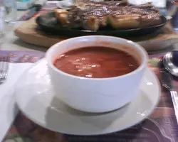 沙律同湯一齊上, 沙律略為細份左d, 但尚算新鮮, 湯係羅馬蕃茄忌廉湯, 酸酸甜甜好creamy, 好岩我口味,