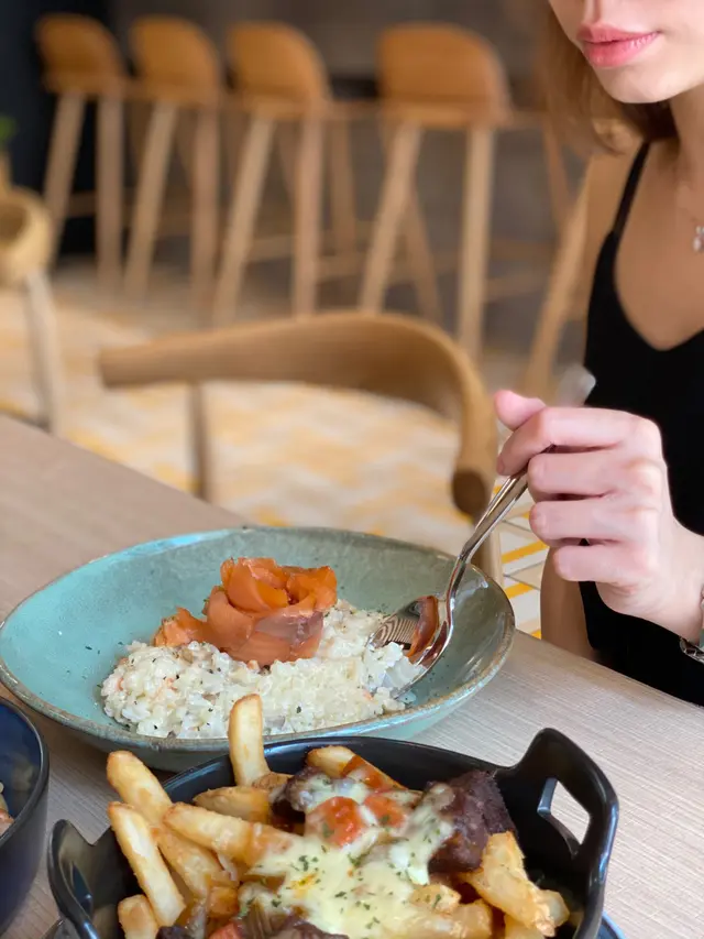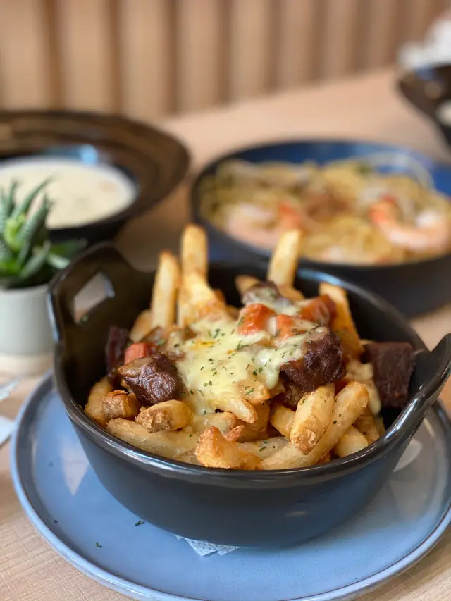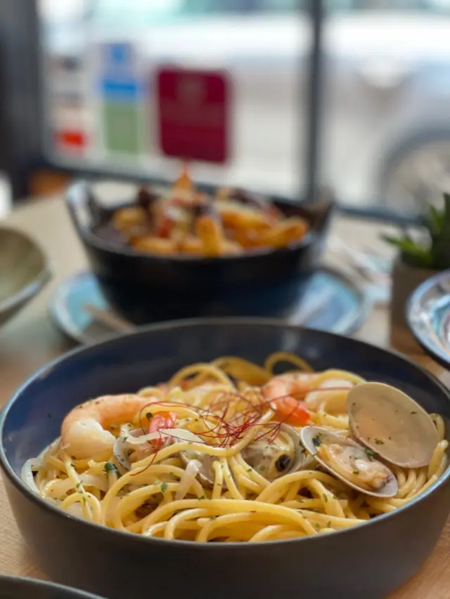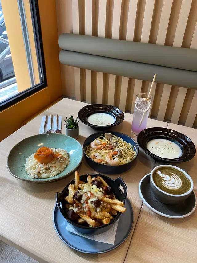 俾我發現咗一間位於佐敦嘅韓式文青Cafe主要以淡黃色木色為主題我選擇左窗邊位 最容易影相大家Walk in都可以!附近都仲有其他Cafe 都有特色白蜆蝦肉意粉 👍🏻👍🏻👍🏻 如果鍾意食硬身啲意粉呢一款好啱你!我感覺佢啲蟹肉有啲泰式辣醬味😂煙三文魚忌廉意大利飯👍🏻👍🏻👍🏻👍🏻 忌廉味重 口感比較creamy同濃少少牛頰肉芝士薯條👍🏻👍🏻👍🏻有啲似地瓜薯 比較粗身!檸檬汽水 清涼解渴 好Fresh !焙茶拿鐵 朋友話好好味😋…Read More