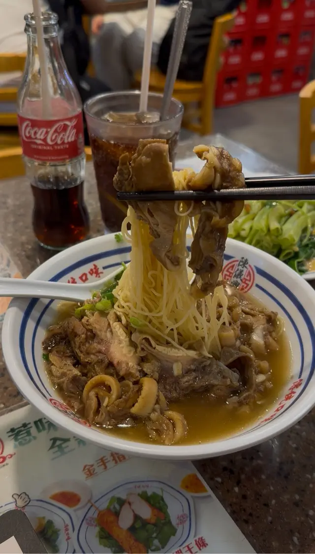 牛脆骨麵絕對係隱藏版美味!牛脆骨係牛隻肩胛連接肋骨嘅稀有部位🐂,帶有半透明軟骨同少量肉質,經過長時間炆煮後,軟骨變得腍滑入味,入口即化得嚟帶微微嚼勁,膠質豐富到黏嘴唇👄~ 湯底以牛骨熬製,濃郁得嚟唔會過鹹,每啖都係骨膠原精華💫!腐乳通菜通菜嫩綠爽脆,腐乳醬香濃惹味;龍鳳檸樂鹹甜交融,解膩一流~風沙孜然雞翼炸得金黃香脆🍗,孜然香料風味突出,蒜酥粒增添口感,食到舔手指!環境懷舊乾淨,服務親切,$60左右就食到罕有牛脆骨麵套餐,性價比超高~…Read More
