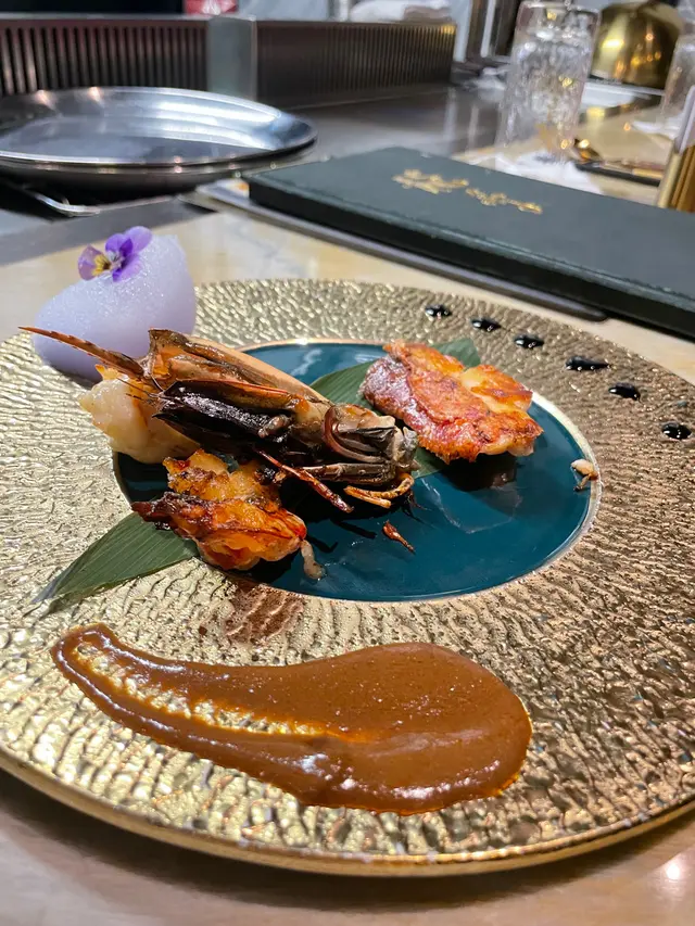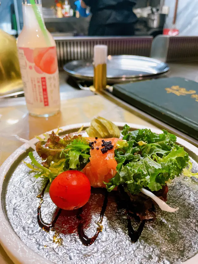「鐵板OMAKASE體驗」中價位Set(7道菜) $788沙律🥗意大利黑醋汁配魚子醬沙律酸酸地開下個胃前菜🥕「食用花配魚子醬生蛋」- 超有特式嘅食法「手打檸檬忌廉配秘製菠蘿醬鵝肝多士」👍🏻- 菠蘿醬完全可以消除食鵝肝食到濟果種感覺- 直接將成道菜提升去另一個層次「鐵板海鮮兩款」龍脷柳片+ 虎蝦- 左上紫色嘅係碟豆花分子料理泡沫, 食落咸咸地有啲海鮮味,幾特別嘅感覺- 圖嘅下面係手打蝦頭汁「鐵板肉一款」🐂- 7成熟牛柳粒- 自家製炸蒜片- 食用花手磨wasabi- 食用竹炭- 師傅燒牛嘅時間啱啱好,肉汁無流失之餘仲可以入口即溶,配埋上面三款配料食,又可以將個口感昇華「昆布豆腐湯」「海膽+海鮮炒飯」「時日甜品 - 豆腐雪糕」…Read More
