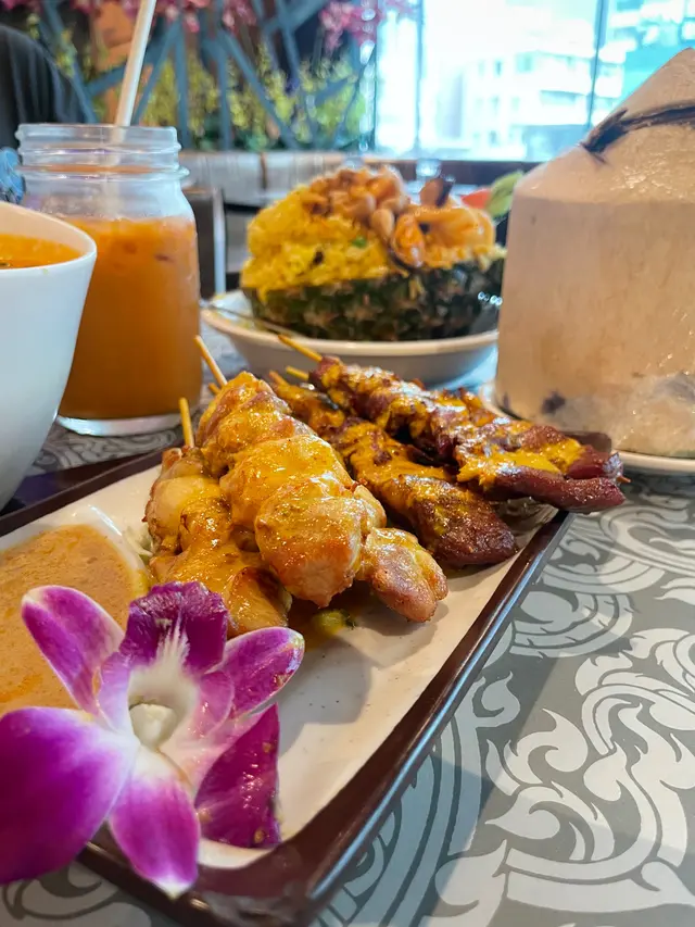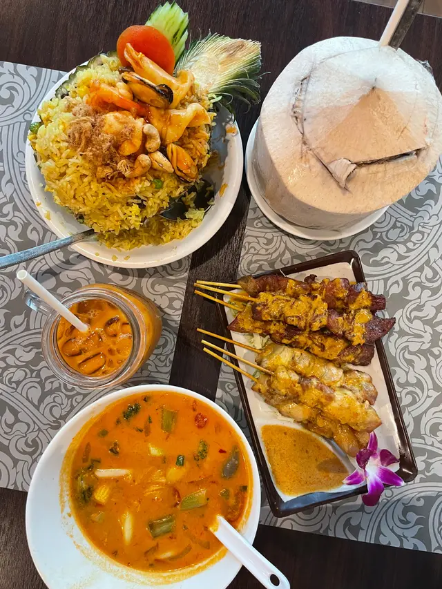 位於旺角同太子交界嘅泰屋,無論由旺角抑或由太子出發,都非常近,大廈附近有巴士,行5分鐘路程又有地鐵,約朋友/ 約同事 都可以大家就腳!落order 無耐,所以餸菜都上齊!好快手👍🏻👍🏻👍🏻牛&雞串燒🍖🍖牛略嫌有少少乾,但個味醃得好好雞燒得啱啱好,好Juicy亦好滑滑蔬菜冬陰功湯:味道溫和,唔怕辣好易入口,如果酸味可以減少少就啱啱好菠蘿海鮮炒飯炒飯粒粒分明,每一啖加埋菠蘿果肉去食,極之開胃 。生蝦刺身必點椰皇!!…Read More