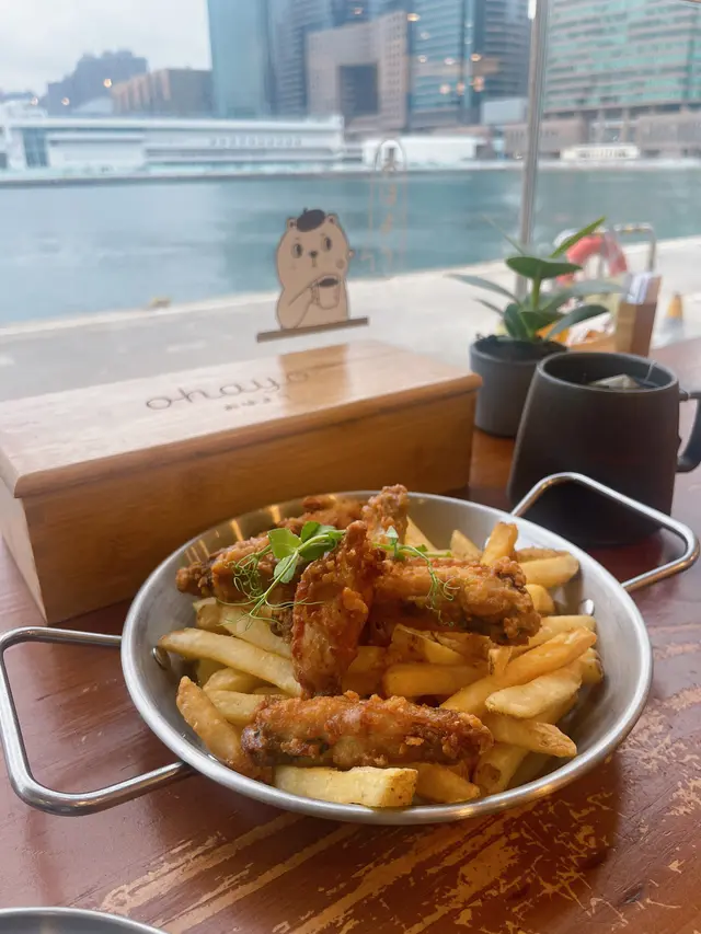 行街行到攰攰地,見到呢間Cafe好日系,望一望個Menu,係我想食嘅嘢,同朋友諗都唔諗即刻衝入去Tea set:宇治抹茶紅豆窩夫配雲呢拿雪糕要大讚抹茶紅豆窩夫做得非常出色,因為新鮮整起,所以個外皮超級脆而且雪糕超級滑,一啖熱辣辣嘅窩夫,一啖凍冰冰嘅雪糕,隔住嚟食好有口感蒜香牛油單骨雞翼:由於單骨雞翼,所以非常易入口亦都係新鮮炸起,所以口感非常鬆脆雞翼底配咗薯條,略嫌粗薯條有少少鹹坐窗口位可以望住呢個維港景食無論朝早同夜晚,都會好靚,成個環境都好好好適合情侶或者朋友嚟傾偈食飯…Read More