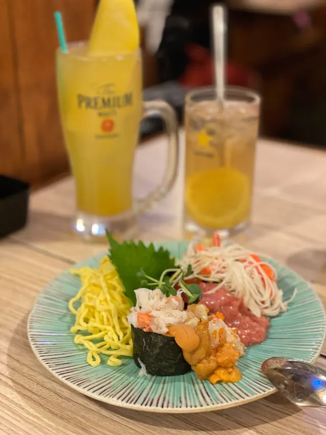蟹子蟹蓋鵪鶉蛋燒 好好食😋必試item, 我覺得爭咗碗白飯😆唐揚八爪魚炸左之後嘅八爪魚外脆內軟,熱辣辣食,再點一點小小沙律醬,咬落去好Juicy, 海鮮味極濃👍🏻炎丸號有不同刺身同軍艦味道嘅拼盤入面有海膽,帶子,蟹子,吞拿魚,蛋絲,蟹柳絲,魚子,一次過滿足大家對食刺身嘅慾望炎丸活貝大盛生猛海鮮,員工仲要幫你燒埋,佢地預好時間就會放去你隻碟,唔洗自己燒,唔怕overcook,呢啲都係留返比專業人士做啦三文魚冷麵對於我,係好創新嘅食法。每條三文魚都切到一樣Size,可以當係一埋粗麵咁食,點埋豉油鵪鶉蛋Wasabi汁,果然係perfect match, 同一般平時食三文魚刺身係另一個感覺…Read More