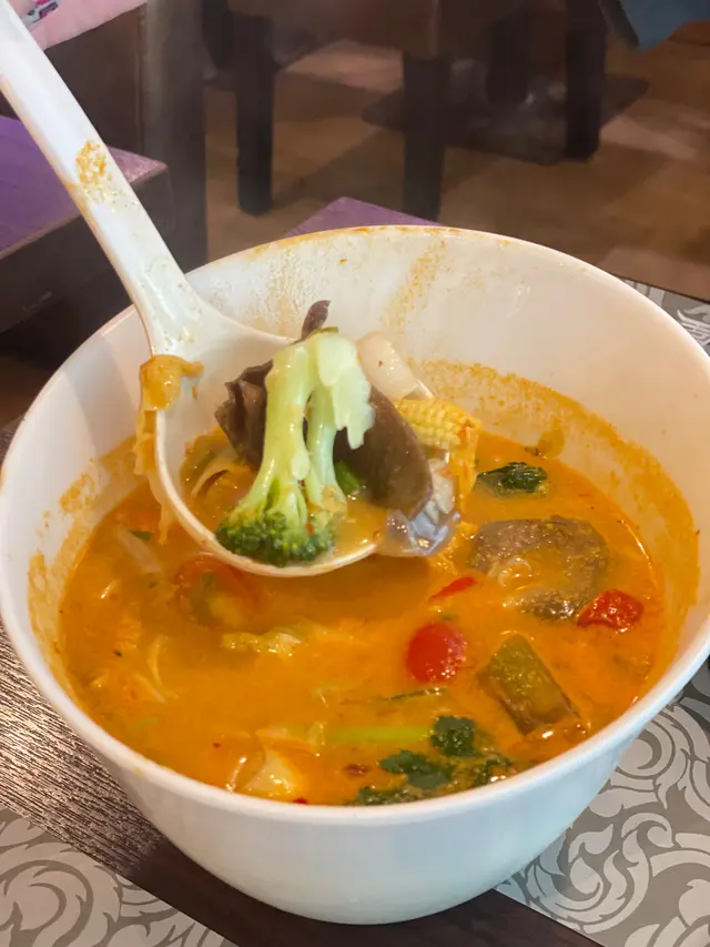 冬蔭公湯今次冬蔭公湯嘅辛辣(重手咗小小),加上酸味(適中)岩岩好,辣同酸絕對可以話係Prefect match,特別適合鍾意刺激味蕾嘅你,凍冰冰咁樣飲一飲成個人都暖哂青咖哩雞肉用青咖哩醬調味,通常搭配椰漿,令整體口感更加滑滑。加上要煮到雞肉嫩滑係好講師傅嘅手勢(我覺得今次嘅熟成程度係岩岩好),搭配新鮮蔬菜(蘿蔔,西蘭花,椰菜花)嘅顏色配對,口感同視覺都即時提升。不過今次嘅咖哩偏辣左小小,但非常適合送飯食。青檸鮮烏頭魚爐鮮烏頭魚喺呢道菜嘅主角,搭配青檸和香料一齊煮,味道清新。青檸🍋‍🟩嘅酸味估唔到同烏頭又咁夾啵,可以吊到個鮮味出嚟 。而家店舖會比多一兜汁,一邊煮魚一邊淋汁,咁就唔會煮到乾哂啦,呢一點好細心 。馬拉盞炒通菜一定要配白飯食,超級好送飯。…Read More