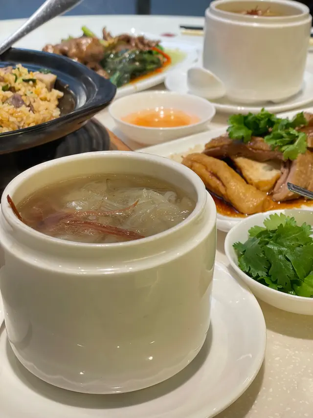 細個屋企人成日帶我去食潮州菜,大大下就小食咗好多。正潮樓喺某日路過 覺得好似唔錯,帶返屋企人食返兒時味道 。店內裝修:✅✅✅格局舒服,唔會有打冷果種濕淰淰嘅感覺擺設都睇得出老闆別有心思 。我地二人叫二人餐「金牌菜膽翅套餐」1️⃣菜膽火腿翅一壺壺咁上,清清地,又有一絲絲嘅翅淡淡味加金華火腿絲提升咗成壺湯嘅口味2️⃣滷水鵝肉雖然都係滷水嘢,睇落無乜特別,但佢嘅豉油味道係其他地方無嘅味道嚟㗎肉質好軟身,唔靭 。3️⃣沙茶炒牛肉牛肉配芥蘭,送飯一流4️⃣欖菜炒香飯(欖菜無哂,轉咗芋頭炒飯)炒飯粒粒分明,芋頭切到細細粒,容易入口,相信呢個炒飯無論大人細路都啱食…Read More