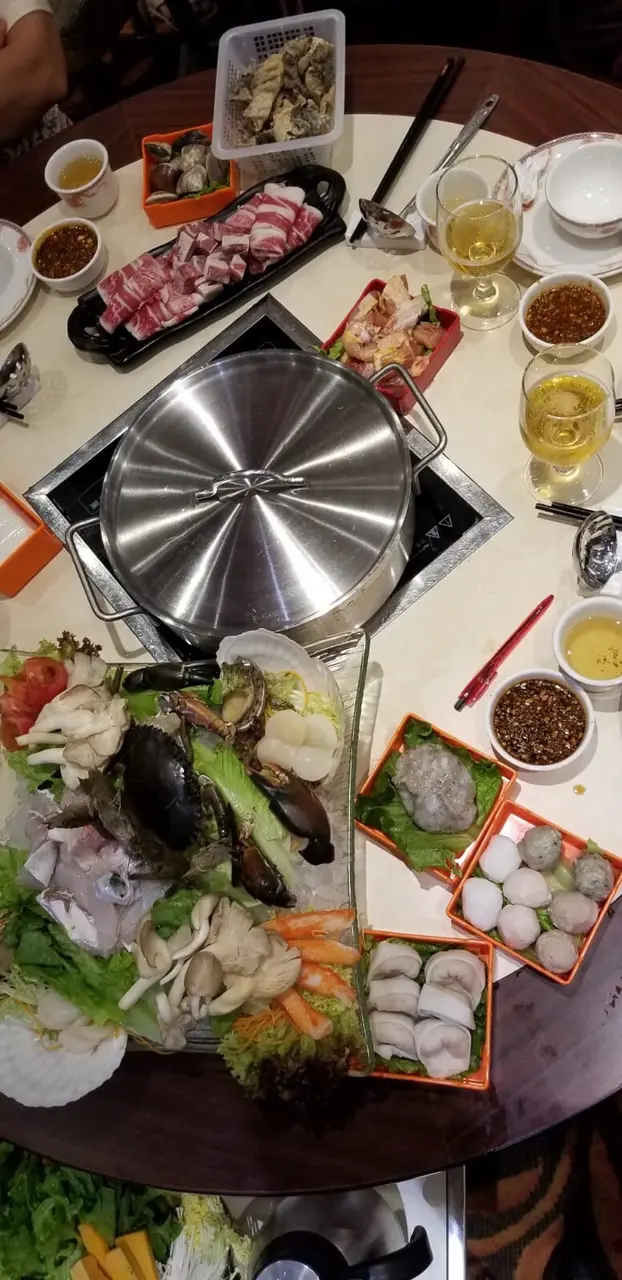 昨晚同家人慶祝父親節,食打邊爐。雖然佢哋有火鍋任食放題,但是我們最後選擇了散叫,因為我哋諗住唔係食好多嘢,原來散叫打邊爐都唔算貴,好抵食。湯底>我哋點算左一個麻辣雞煲~湯底好濃郁雞好嫩滑。花雕醉雞件>有花雕的香味四寶丸>有墨魚丸,鯪魚球,朱肉丸及鯪魚球,都好新鮮墨魚滑>有口感。田園蔬菜籃>內有很多種蔬菜,擺設吸引,顏色豐富,蔬菜好新鮮。最觸目的就是一個海鮮拼盤,擺設好吸引,夠新鮮內有龍躉班片,有一隻肉蟹,有鮑魚,有元貝等這次父親節家人都食得好開心,所以今次打邊爐非常之抵食。