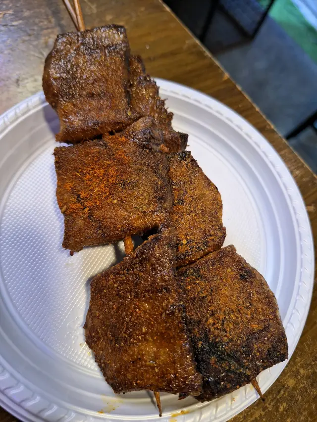 必嘉街的串燒店,店仔細細,旁邊是地盤圍板,不算是最理想的環境,但串燒的確出色,很有重慶風味。尤其燒牛舌,又軟又香,吃得出是上佳部位,燒茄子惹味,連皮也可以吃,亦有麻辣燙,湯底又香又辣。要負評可能是燒雞中翼,外皮香脆,但中間很淡,另外雞肉串及五花腩,肉切得比較細,燒完有點太乾。…Read More