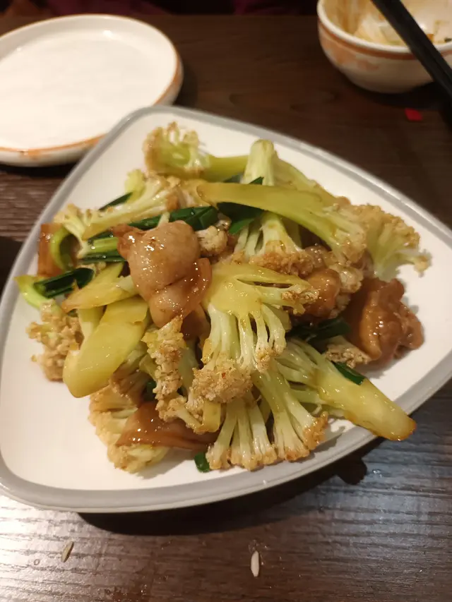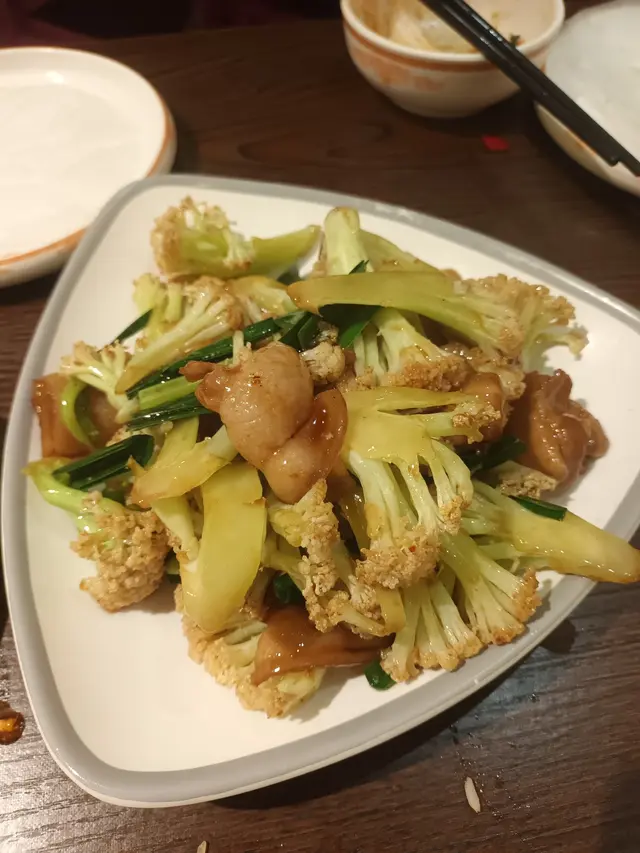 Stir-fried Pork Belly withCauliflowers大盆花菜