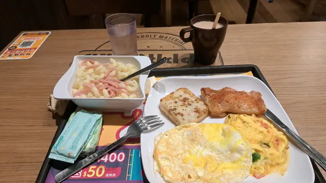 今朝去天后做嘢,時間未到就去大家樂食個早餐,我order左個纽纹粉配炒蛋,另外自己加左個雞扒及煎蛋。纽纹粉味道唔錯,炒蛋粉量多,反蛋唔會燶,雞扒煎得啱啱好,配埋醬汁食完全食唔到雪味