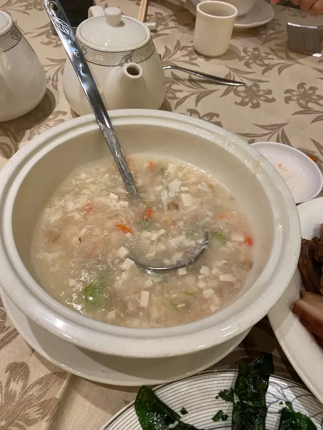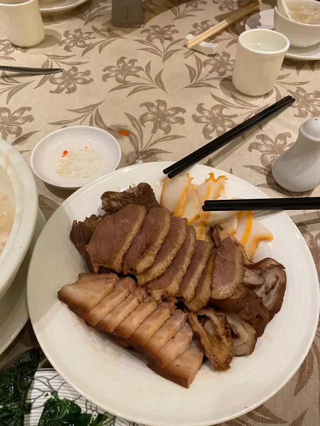 今天和三位好友來這家慶祝,我們點了$2XXX的套餐,比我預期的好吃。前菜一般,秘魯人蔘石斛螺頭黑毛豚肉湯用茶壺上,賣相吸引,味道甘甜濃郁,值得一試。陳香蒸南非鮑魚,以上碟就有濃濃的陳皮香,惟鮑魚某些部分有點韌。龍蝦開邊上湯煮,每位需加$50,但龍蝦啖啖肉,肉身嫩滑鮮甜。招牌茶王燻雞,是這裡的招牌菜,雞皮脆肉嫩,還有濃濃的煙燻味。值得一提的是他鄉炒米線,配上巴馬火腿絲,賣相精緻。另外米線非常輕盈幼細,值得一試。…Read More