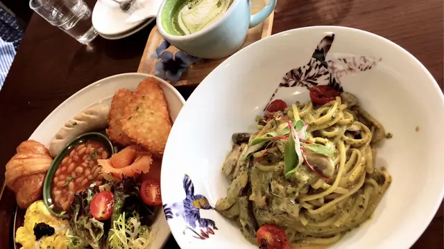 【La Vie En Rose 蘋果、玫瑰草、玫瑰花瓣、紅茶】【Beeeee Calm 洋甘菊、蜂蜜香料、雲呢拿】隨餐附送的餐飲,選項有很多,除了喜歡這裡的花茶,他們家的咖啡也是不俗的!小提議是可以增加奶類的選擇,例如燕麥奶,令不能吃gluten的客群也可以喝Latte