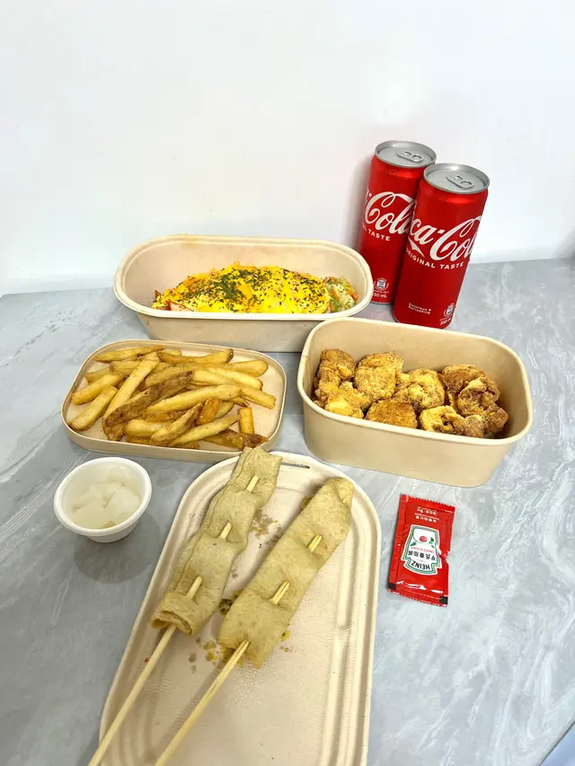 收工買外賣番屋企食,想食D邪惡野食,揀左呢間性價比超高嘅韓式炸雞,超抵食套餐👍🏻2人套餐3人食都夠❤️芝士炸雞好欣賞佢嘅炸雞👍🏻外皮炸得好酥脆但又唔會厚粉,肉質保持到鮮嫩多汁,配上超惹味芝士粉,簡直冇得彈🤤❤️韓式泡菜蛋蓋炒飯唔算好辣嘅泡菜,唔太食得辣嘅人應該都可以接受👍🏻配埋蛋,令到成個炒飯增色不少❤️韓式魚糕串厚厚嘅魚糕串👍🏻即刻想念韓國嘅萬人串😂套餐配埋薯條、醃蘿蔔,仲有汽水👍🏻超脆嘅薯條…Read More