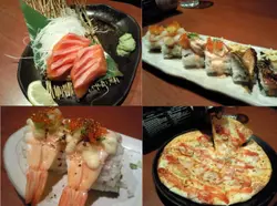 白飯*2先來一客三文魚刺身,厚薄適中而且十分新鮮,但不夠肥美而且連著像是皮下脂肪的位置。雖然感覺怪怪的,但蘸著不嗆鼻的芥末吃還是鮮味十足,伴碟亦見心思,不錯的刺身。再來的是特上壽司盛合,有灸燒海老,蔥吞拿魚和照燒雞三種口味。火灸的功夫做得十分的不錯,燒得夠香但又不致太乾。墊著的卷物是簡單地以紫菜捲著飯而成,加入芝麻和帶點醋味,添著不同的食材是十分的好吃!蝦十分的爽口,舖上飛魚子是錦上添花之作。吞拿魚腩新鮮,加上蔥花可辟走少許腥味,好吃。照燒雞有點怪怪的,我并不喜歡照燒汁那甜甜的感覺呢。