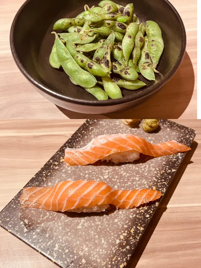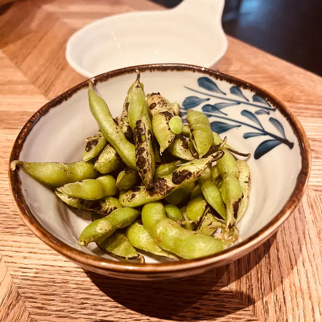 刺身由赤身、中拖和大拖組成,每一片都很鮮嫩,入口即化,帶來一種甜美的海洋味道,令人回味無窮。炙燒枝豆