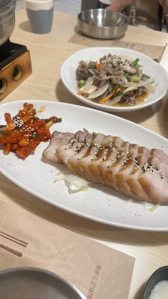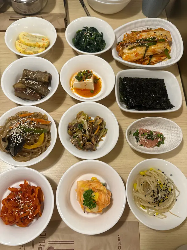 【韓國菜新體驗😍】 第一次見成張枱上菜未?😨staff係成張枱推上你張枱😂因為佢嘅嘢食已經預備好晒,同埋有12碟韓國小食咁多!我地叫左2人餐,已經有1個主食湯or鍋,再揀3款肉類主菜,分別點左菜肉包、烤牛肉同黃油烤魷魚😍3款都唔錯!韓國嘅菜肉包係一片片豬肉😙我記錯咗係泰式嘅碎豬肉🤣好彩,見到佢一片片起碼多肉先🤣同埋配呢個紅色嘅唔知咩醬呢,幾好味😂黃油烤魷魚,係韓國好出名嘅菜式,入邊應該用咗牛油,所以一上枱就好香,魷魚又好食!烤牛肉嘅份量都幾多,雖然冇我想像中嗰種咁燒烤🤔佢比較係用汁炒嘅,味道都ok!同樣,都係點紅色個醬好味🤣12碟嘅小食,最右上角嗰啲泡菜好大碟少少辣啫,其他仲有紫菜、芽菜、炒粉絲、茄子、蛋餅、魚子🤔,你講得出嘅韓國小食都有!2人餐都係~$600,我地3個女仔食啱啱好,仲有食淨少少~又唔洗加一幾批抵! …Read More