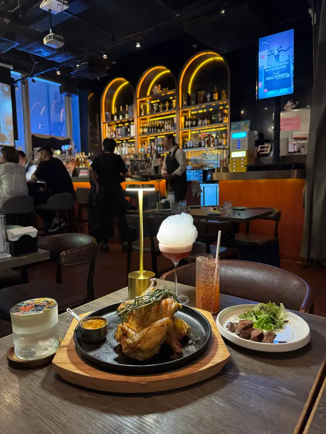 最近去左尖沙咀既The Wall Street Bar & Lounge同男朋友慶祝紀念日,好鍾意佢哋食物上面既創意,滿足哂我地想要既儀式感!哩度既食物同cocktail 都令我地印象深刻,環境chill得黎又好舒適,非常適合跟朋友聚會,收工happy hour chill 一chill!招牌火焰香草烤雞哩道招牌烤雞真的是必試!外面烤得金黃香脆,裡面卻肉質鮮嫩多汁,層次很豐富,火焰上枱既效果好正!仲要超大隻,我同朋友都覺得好驚喜!牛油果水牛芝士蕃茄沙律超清新既牛油果,加上水牛芝士又濃郁,搭配酸酸的蕃茄,既健康又開胃!香煎厚切牛脷厚切牛脷煎得剛好,外焦內嫩,搭配特製醬汁,肉香四溢,口感煙韌!每日 happy hour既3рm-7:30pm,所有啤酒紅白酒及無酒精飲品一律半價,超抵!Crystal Coffee這款打印圖片分子雞尾酒真係好特別,用 Vodka 提煉咖啡豆的香氣,咖啡竟然變得透明,口感獨特!上面的海鹽奶蓋讓味道層次更豐富,絕對值得一試!仲有火焰效果,打卡一流!Fairy Wings哩杯以 Vodka 為基底既雞尾酒,草莓的甜味加上杏仁和蜜桃的香氣,喝起來酸甜可口,仲有氣泡同輕盈感!Mulberry Sour哩款以 Gin 為基底既雞尾酒,紅桑梅和檸檬既搭配剛剛好,酸甜平衡得非常棒,讓人驚喜!喜歡酸甜口感的朋友一定要試試!…Read More