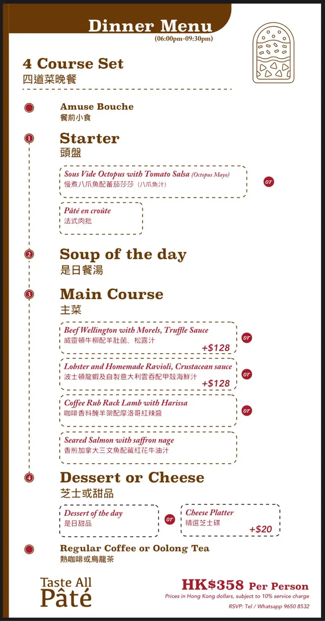 今晚終於試到佢嘅set dinner, 款款都好好味,最有驚喜嘅係佢嘅蘑菇湯、慢煮八爪魚🐙Salsa同埋個奶凍。蘑菇湯超香又夠濃,個慢煮八爪魚淋身得嚟有咬口,完全唔痴牙,仲要個sauce調得好香口,奶凍好夠凍仲有好香vanilla味,仲好味過食雪糕🍦!至於两個主菜都非常出色,威靈頓牛扒個酥皮香得嚟夠鬆化,牛扒煮得啱啱好好夠淋。羊架完全冇羶味,油脂分布均勻,仲要配菜有冰菜好特別!仲有餐廳嘅服務都非常好👍🏻值得encore!…查看更多