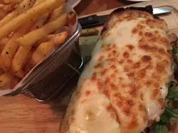 服務員態度好殷勤親切。食物都好味,不過兩個人唔叫得太多野,2碗湯,頭盤,意粉,甜品都係share 黑松露蘑菇湯,好熱辣辣,好濃味但比較稀身。頭盤叫咗一份好似一份三文治上邊有好芝士入面有菜同ham芝士味好香,薯條好香脆同埋上面有松露粉。牛扒扁意粉的牛扒比較熟但好濃郁味道意粉就正常味道都幾好食嘅。甜品帶叫左個窩夫配士多啤梨同紅莓醬加雲呢拿雪糕,窩夫係即整嘅好香脆。