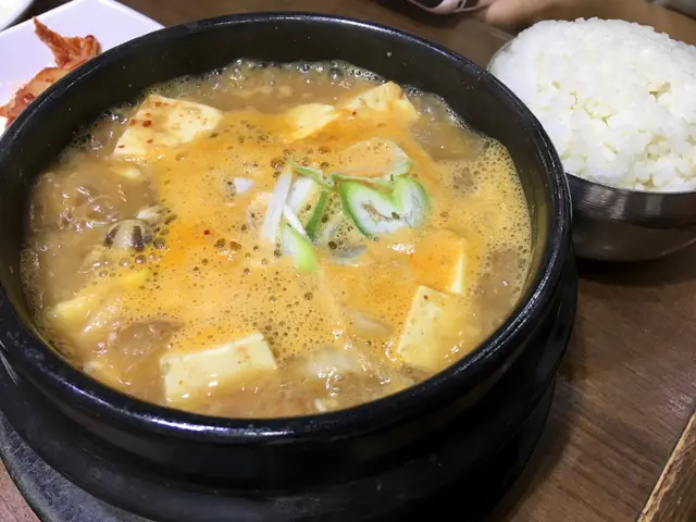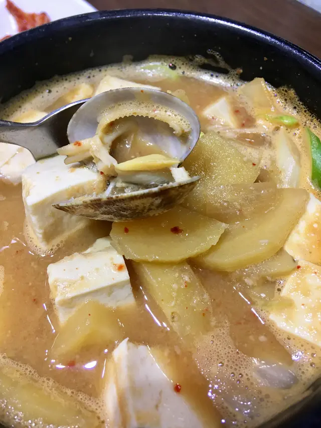 過嚟呢頭睇韓國食材,順便食埋晏。舖頭簡潔明亮,寫完紙仔落單,飲啖茶,望吓街,hea 住等食。麵豉大醬湯,餐牌上用英文寫成 Miso Stew with Crab and Clam。現實版係見唔到有蟹,主要食材係蜆、實豆腐及疑似番薯。湯好熱,滾住上枱,舖頭的強勁冷氣幫手將佢快速降温,入口比較鹹。韓式湯麵即係齋麵,麵身幼滑,口感唔錯,多啲紫菜更好。懷念喺首爾的舖頭仔食麵,成盒紫菜碎放喺枱面任加任食。呢碗麵份量大,好夠飽,清湯底味精算輕手,略嫌鹹咗啲。枱上最好味的,係幾款小食。泡菜有蒜香,夠辣又爽脆,食落新鮮,係最喜歡的韓式原味,由於份量少,要同老友搶食。以為白蘿蔔係酸的,點知係鹹架,好有趣,食到蘿蔔的清香;用青豆做小食唔常見,遇到會特別開心。…Read More