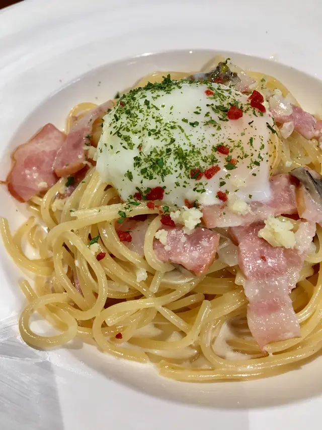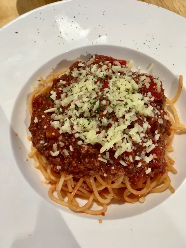 收工後想食件餅,上嚟試吓千層蛋糕。睇完餐牌,索性叫多兩個最平的意粉餐,價錢實在吸引嘛,凍飲唔使加錢、有雪糕,仲冇加一添。肉醬意粉灑咗好多芝士,肉醬份量亦多,食落出奇地淡口,唔係預期的香濃。卡邦尼温泉蛋意粉嗰忌廉汁,貫徹清淡風格,但有煙肉同蛋黃汁幫手加味,整體味道好過肉醬意。如果將煙肉煎耐啲變香脆,相信味道仲好。主角千層蛋糕,試咗綠茶味同焙茶味,結果焙茶味勝出!佢冇綠茶咁甜,焙茶嗰朕獨特香味唔係人人接受到,呢件餅的茶味恰到好處,唔會濃到嚇走你,亦非淡而無味,食晒唔覺甜到漏,絕對能夠偷走焙茶控的心。起身去找數,先覺肚皮脹晒。門口餅櫃入面,蛋糕所剩無幾,確實名不虛傳,下次一定要試其他口味。客多,店員幾忙都保持禮貌,服務勤快,樂意將凍飲走飲管,讚。…Read More