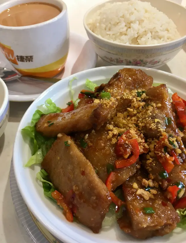 一份午餐包括四樣嘢:即炒小菜、熱辣辣白飯、唔係味精加水例湯(賣晒就冇)、有茶香的奶茶。食晒真係超飽,之後醒目帶埋飯盒嚟。試過椒鹽豬扒(好夠味,可惜豬扒一啲硬,一啲稔)、味菜銀芽炒牛肉(酸甜惹味,牛肉唔係發粉牌)、芹菜蘿白炒豬肉(勁多蘿白,芹菜得幾條實在太少喔)。例湯唔係水還水、渣還渣,夠熱,飲完唔口渴,少鹽更加好。如果飲開奶茶少奶的,唔使再特登叫少奶。呢個餐有個特別名稱叫開心餐,佢確實做得到。有選擇困難唔知食咩好,店員冇催快落單,亦冇催交枱。試埋早餐,牛油厚多士夠脆夠熱有麵包香,米線多餸仲有條菜咁健康,已經成為自己的快樂早餐。…Read More