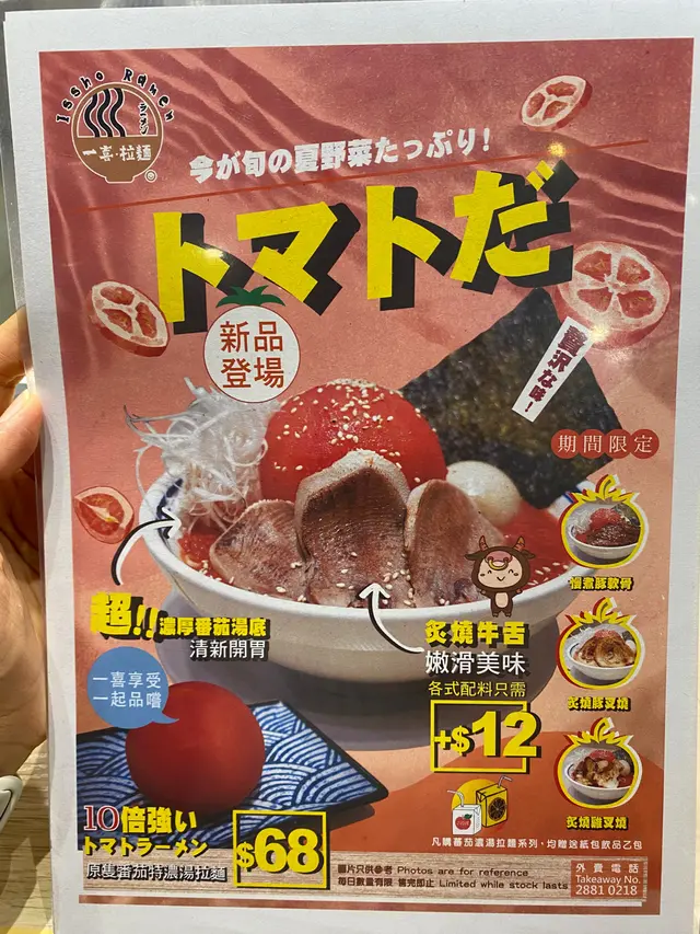 好可愛😆)餐牌都幾多嘢揀㗎喎~最吸引我嘅梗係白雞湯拉麵啦唔係度度都有得食❗️ 估唔到石門都有❗️😋😋$79 一碗拉麵喎😎價錢吸引佢仲有做晚市定食全部都70幾蚊 (不過個人對飯興趣不大😗)多口問店員有咩好推介?佢就介紹咗兩款期間限定:1️⃣ 炙燒牛舌茄湯2️⃣蟹皇湯拉麵 (配炙燒牛舌/炙燒豚叉燒或雞叉燒)店員話茄湯好多女仔鍾意食..👉🏼👈🏼但我冇聽佢話✨我揀咗蟹湯配豚叉燒(覺得矜貴啲😂)✨另外再叫咗白雞湯要辛口❤️🔥(唔使加錢)🍜濃味辛口白雞湯(+$16 加流心蛋同特盛叉燒)見到個湯咁濃郁 令我興奮不已😆即刻飲番啖🫨醒腦醒神‼️好少喺日本拉麵食到呢一種辣味好香口 令我飲完一啖又另一啖🫨🫨好彩有加咗特盛叉燒🥹目測每一塊有1.5cm 厚‼️總共有四塊咁多‼️(即刻覺得有抵咗🫨)佢係我咁大個女食過最好食嘅雞叉燒快快都有火炙過‼️啖啖都食得出有雞嘅鮮甜味㗎