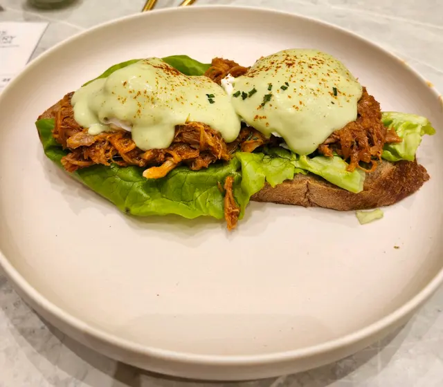 一開頭等咗陣位,有個職員就叫我哋點餐付款先。然後就帶咗遲過我哋排隊嘅人入座先,安排失當。嗌咗一份菠菜煙肉班尼迪蛋酸種吐司,一份手撕豬仔骨班尼迪蛋酸種吐司,一杯牛奶咖啡,一杯凍水果冰茶。然後攞咗號碼牌,職員就安排咗另一個位俾我哋,帶我哋入座。過咗八分鐘,就上咗兩杯嘢飲我哋。之後再過咗3分鐘就上咗兩份吐司。但係其中有一份上錯咗隔一枱嘅牛角包,我嗰份吐司就俾咗佢。又要搵職員安排。餐具係要自己拎嘅。個煙肉鹹到好似鹹魚乾咁。個手撕豬仔骨就甜甜地嘅,麻麻地。兩份吐司味道都一般。食食下仲食到有一堆蛋殼。牛奶咖啡非常澀。果茶就ok。不過整體嚟講係十分之差,唔會再嚟。