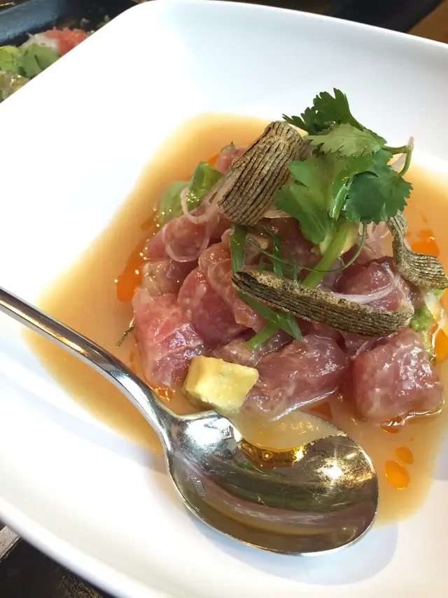 今日同朋友聚舊...差唔多兩年冇見面....我地揀左一間環境幾唔錯既餐廳可以好relax咁update下大家既生活一坐落就覺得燈光呀裝飾呀各樣都好舒適,坐既位置都好闊落而店員都好親切友善,,食物質素都好好,,令我地可以有一個好愉快既晚餐時光一黎到我地揀左個牛油果三文魚沙律由於我係好鍾意食沙律既朋友黎...所以食完呢個我就已經覺得好滿足份量亦都好足夠....望住上面個幾舊滿滿omega3既肥美三文魚就已經流晒口水,,,然後我地食左個咖哩吉列豬排...個舊吉列豬排咬落去脆卜卜咁....襯埋d又唔係好辣既咖哩汁..食到我停唔到口....咁為食既我食完碟飯梗係完全唔夠啦...黎多個叫做蝦三味....咩黎架呢?原來就係三隻唔同種類既超大隻蝦壽司超鮮甜!超鮮甜!超鮮甜!仲係勁肥美勁有口感....接住落黎既就係燒日本廣島蠔....佢係用炸蒜頭架蔥放響上面,,加多小小檸檬汁上去食落去個時係要慢慢咀嚼去感受個隻蠔既鮮味..加埋檸檬汁個小小酸味...如果我仲食得落既話真係仲想食多幾隻但係當然我冇食多幾隻啦....因為我仲要留返個肚食火焰海膽帆立貝卷...呢個堅料....除左海膽帆立貝之外入面仲有蟹柳青瓜玉子做配菜...咬落去個時有鮮甜又有清爽既感覺最後梗係要食埋個甜品先滿足架啦....我地叫左個宇治抺荼莓芭菲...上面有兩條脆脆之外原來個底都有脆脆栗米片....仲有d煙煙韌韌既好似和果子咁樣既野,,但係我唔知真實佢係叫咩名口感好特別,,,感友覺係有驚喜...加上香濃既抺茶味雪糕同紅豆,,,真係好完美既配搭可能心悄愉快所以覺得樣樣都好好食....…Read More