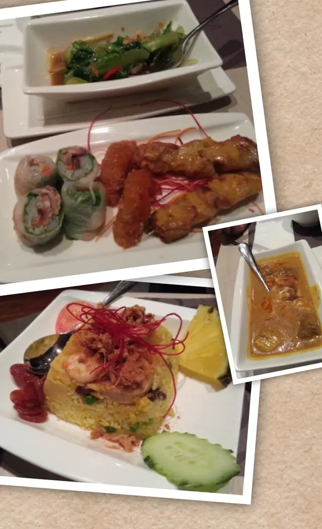 一講起食泰菜係香港一定諗起了九龍城, 但交通唔係好方便,又坐得唔係好舒服. 如果係東九返工又或者住係將軍澳的朋友可以黎呢間餐廳, 頂一頂泰菜癮是晚2個人黎食晚飯, 叫左2人餐, 加左鐵板豬頸肉炒貴刁 同埋薄餅.2人晚餐有小食併盤, 馬拉盞炒時菜, 咖哩牛腩, 菠蘿炒飯. 小食併盤中, 我欣賞炸蝦餅內有碎香草, 香葉清新, 減少油膩感.泰式米卷, 米皮不錯,其中包住的九層塔十分新鮮,VERY GOOD!