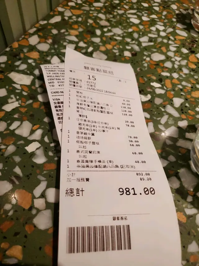 經openrice訂位, 一行三人晚飯時間去到唔使等. 我地點左廚師推介既黃咖喱軟殼蟹、素菜米紙卷、雞肉生菜包、泰式炒飯同埋芒果糯米飯, 全部食物都唔錯, 如果有埋船果d就好喇...全晚見到三位服務員, 一位香港人, 另外兩位似係泰國姨姨, 其中一位戴眼鏡既, 態度麻麻, 叫佢俾個飲品menu, 食到咁多下, 再叫佢俾個食物menu, 點知佢話: you asked for drinks menu, 咁我地就話, yes but we need the main menu again, 佢先拎過黎. 無人主動斟水, 或者俾樽水我地自己斟, 但又有service charge. 整體講句, 我地未必會再黎.…查看更多