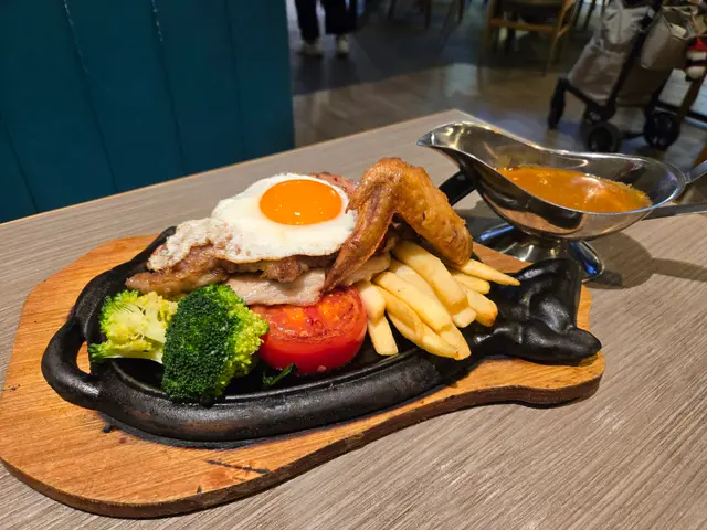 早兩日喺樂富茜廊食完個西餐,今日同拍檔落天水圍做嘢,又見到呢間分店,即刻同佢入去試試。估唔到天水圍呢間分店有咁多選擇,除咗食扒之外仲有雞煲。拍檔叫咗個兒時回憶:鐵板雜扒配薯條:有薄牛扒、香腸、豬扒、雞翼,上邊仲有隻靚雞蛋,無論賣相同口感都一流。加$38仲可以配餐湯同蒜蓉包。佢嘅蒜蓉包值得一讚;新鮮做起,夠晒脆口。我就叫咗個華都夫沙律;真材實料大大份;蘋果同啲沙律菜,西芹都非常新鮮;夠晒健康。跟住我跟套餐加$10要咗個雜錦賓治;靚仔兼好味。最後見到有雜果啫喱;細細杯唔飽肚夠,晒趣緻,埋單兩個人唔使$400。服務殷勤有禮,今時今日香港有質素的西餐廳買少見少。一定要多多支持。…Read More